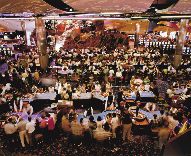 Anne Zahalka creates photographs that play with the conventions of Australian and European art and popular visual culture. In doing so she portrays a culture, its people and places, plundering old myths of national and personal identity and revealing new ones. Star City Casino (1998) is a work from a suite of photographs titled 'Leisureland'. The 'Leisureland' photographs are all images of spectacular forms of popular Australian entertainment and leisure: the casino; the IMAX theatre; an aquatic centre; a wood-chopping tournament; and a demolition derby featuring 'Robosaurus', the first 'car-nivorous' robot.