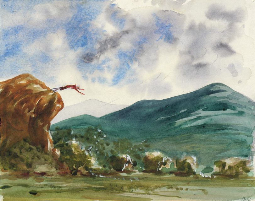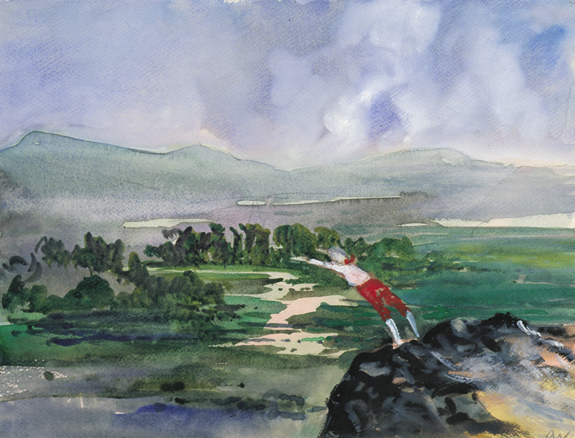 Landscape painting casts a long shadow over Australian art; increasingly, in the 1990s, artists understood representations of the land as part of the complex history of colonial settlement. This postcolonial impulse propelled a reappraisal of landscape painting: 'Landscape is a symptom of and a symbol for human control which operates as an interplay between culture and nature.'1 The landscape is one that Williams's men wish to give their own meanings to. Picturesque, lush and romantic, the landscape is shaped by a vision of nature tamed and contained. Williams's bitter humour, which produces paintings that parody both the techniques and the symbolism of Romantic landscapes, is turned against the 'founding fathers' of southern settlement. Her paintings are funny, but she wants larger questions to be asked when the laughter has subsided. As critic Patrick Hutchings suggests, 'The humans in Williams' landscapes take the question "What am I doing here?" beyond "Why did I sail so far to get here?"; "What am I doing in the Aboriginal and Maori lands?" to "What am I doing being in existence at all?"'2