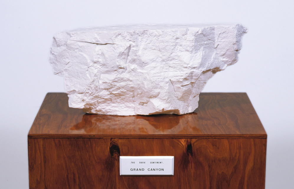 The knowledge on offer is not, however, objective. As Nelson's evocative titles suggest, our understanding of the world is as much poetic and mythical as it is rational. The dark continent evokes a sense of distance and mystery, perhaps even of the unknown reaches of the unconscious mind. Allegorical and metaphorical perceptions of the world are also evoked: the Amazon basin as 'the lungs of the world' and the Grand Canyon as an awe-inspiring register of the passage of millennia. Again, the cheap, mute qualities of the white plaster objects seem at odds with the sublime scale of space and time. Art encourages a desire to connect with nature but can never substitute for it or truly allow the viewer to possess it.