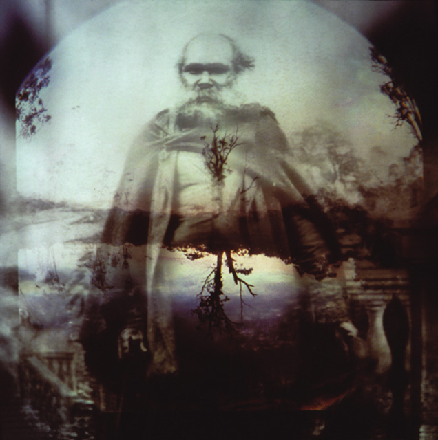 In another reading, the artist's treatment restores the subjects' humanity, allowing us to view them not as victims of colonisation (and the picture frame) but as human beings with their own destinies. Certainly, there is a couched violence in several of the images, most particularly Untitled #3 (1991). The figure in Untitled #5 (1991) dubbed 'King Billy' has the tragic composure of the derelict King Lear, and in the artist’s reworking seems to emerge from a scene from Wuthering heights. The use of a fish-eye lens encloses the image, as though it were isolated in its own world. In this sense, King-Smith has created a dramatic world that is entirely imaginary, which draws as much on universal narrational myths as the particular history of Indigenous peoples. Ultimately, however, these works irrevocably change the way the original photographs are understood, and in this sense it is probably important to view the originals alongside the artist's renditions.