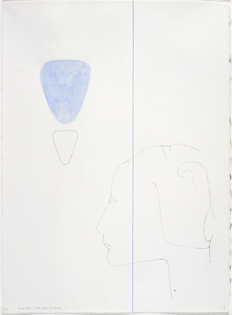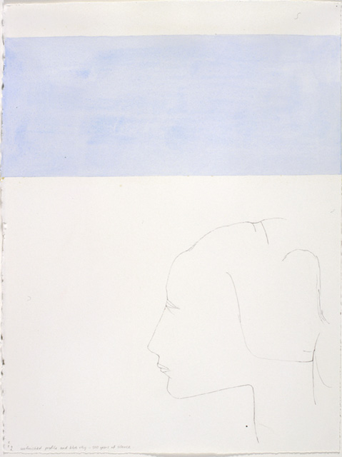 But Piggott is tough. She wears her influences openly, unafraid to be unfashionable. Her experiences in Italy allowed her to emulate the gentle linework of the masters in such works as Blue line—500 years of silence and Unfinished profile and blue sky—500 years of silence (both 1994).