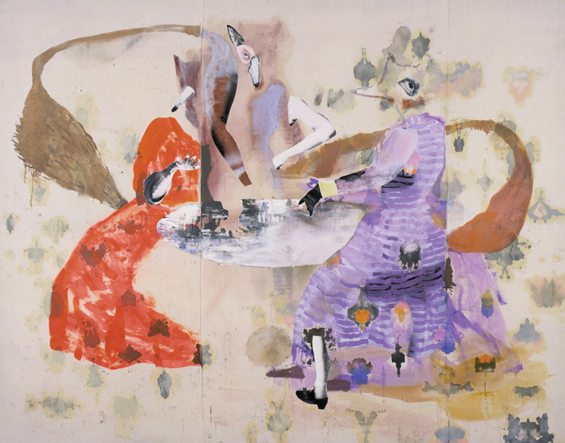 Smart is not interested in finding heroines to match the 'great men' of history; her heroines are the tricksters and the enigmas. Her project, as McDonald suggests, moves beyond a critique of the patriarchy to question reason and reality as such. To return to Anatomy lesson, then, the question is not, Why shouldn't women learn medicine? but rather, Is science the best way of understanding human experience? In this regard, the formal elements common to both works are telling. Women are shown as a community or sisterhood, engaged in collective actions. While their figures are fragmented and incomplete, their gestures are strong; the artist seeks the signs of agency over appearance. The space in which the women move is uncertain, and is littered with foggy, indecipherable images such as X-rays and Rorschach blots. Smart’s expansive compositions and evocative symbols 'keep opening up'.