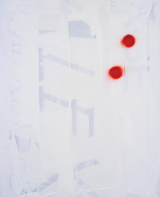 As an artist dealing with Queer issues, Redford's use of the styles and motifs of international modernism also lends his work a visual and intellectual austerity that is rare in Queer Australian art. Above the elbow on the guy's arm at the Wickham (1997) tells a private but common story in a cool modernist style. The Wickham is a popular gay hotel in Brisbane. This work refers to a man seen at the bar with Kaposi's Sarcoma lesions (associated with HIV-AIDS) on his arm. By representing the lesions as spray-painted red enamel dots, Redford has translated them into an abstract visual representation that references both Abstract Expressionism and Pop Art (Roy Lichtenstein's Ben Day dots).